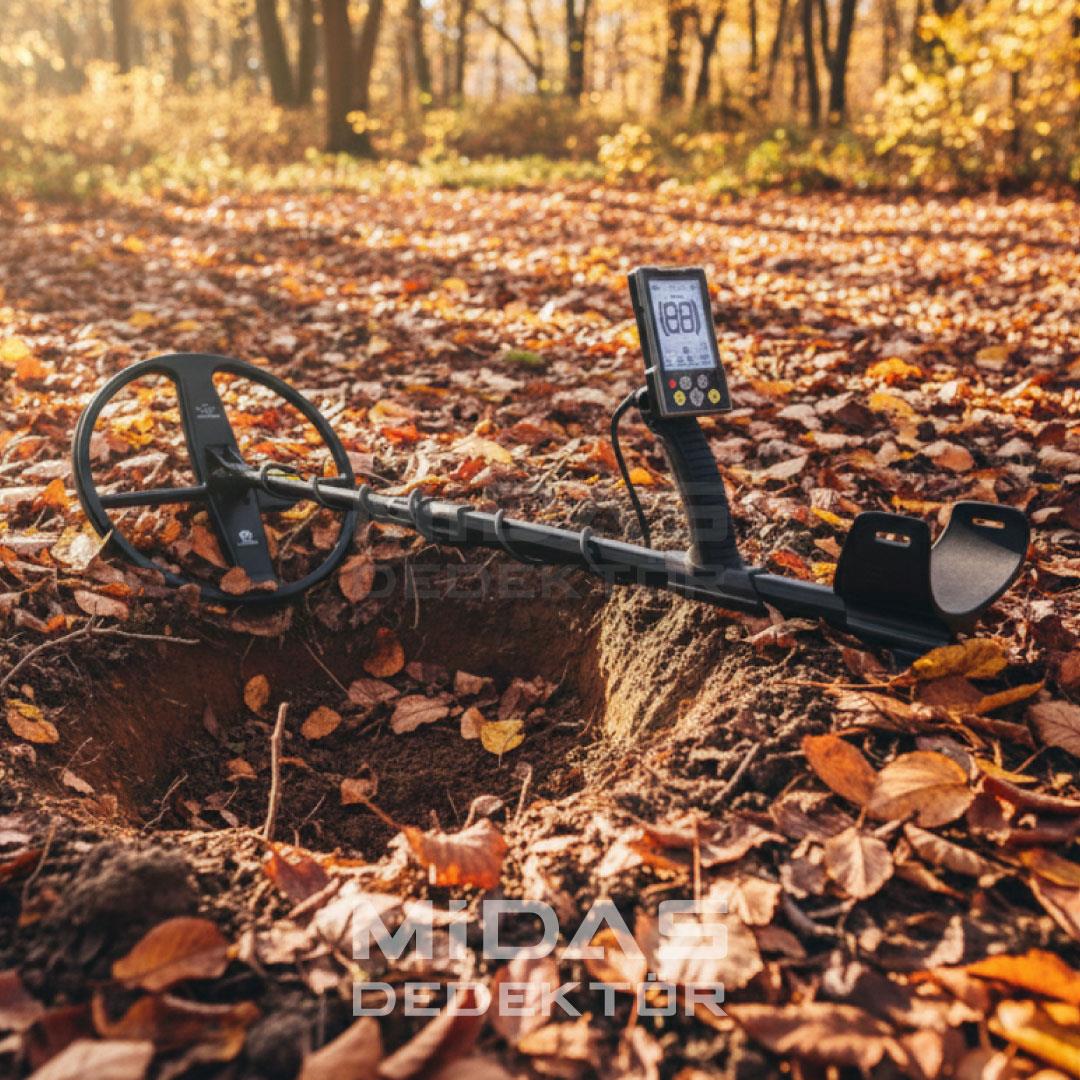 Otomatik ve manuel toprak ayarı seçenekleri bulunur. Mineral yoğunluğu yüksek alanlarda kararlı çalışma sağlar. PINPOINT modu ile hedefin tam yeri belirlenir, kazı alanını küçültür ve zaman tasarrufu sağlar.